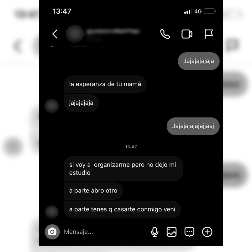 “Yo nunca le contesté nada porque pensaba que se iba creer que yo le seguía el ritmo. Me reía o le cambiaba de tema, o por ejemplo cuando me mandaba mensajes de ‘vení’ insistentemente, yo le preguntaba: “¿A dónde? Y ahí ya no respondía y borraba los mensajes después, pero yo capturaba todo porque presentía que había algo malo y me daba mucho miedo”.