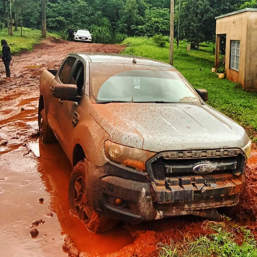 Una hora después, mientras lograban bloquear las calles, el vehículo quedó atascado en el barro en una calle del barrio Elena, en el kilómetro 1. Aprovecharon la situación para detener al joven y realizarle el test de alcoholemia, que habría arrojado positivo.