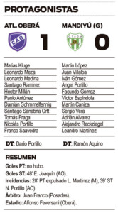 Atlético Oberá sin ideas, no supo aprovechar que tenía un hombre de más, mientras que Mandiyú se aferró a cuidar su propio arco.