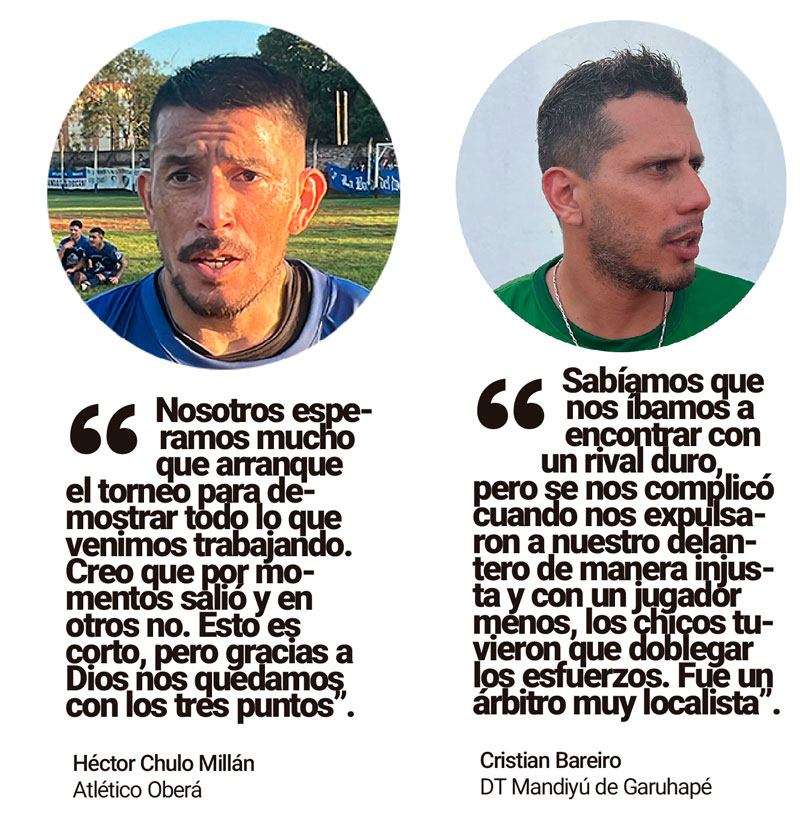 Costó, pero logró sumar de a tres, que es lo más importante para un equipo que debuta como local en un torneo tan corto como es el Regional Federal Amateur de fútbol. En el estadio Alfonso Feversani, Atlético Oberá se impuso por 1-0 a Mandiyú de Garuhapé, con gol de Ernesto Joaquín, ya cuando el juego llegaba a su fin y con ambos equipos con un hombre menos.