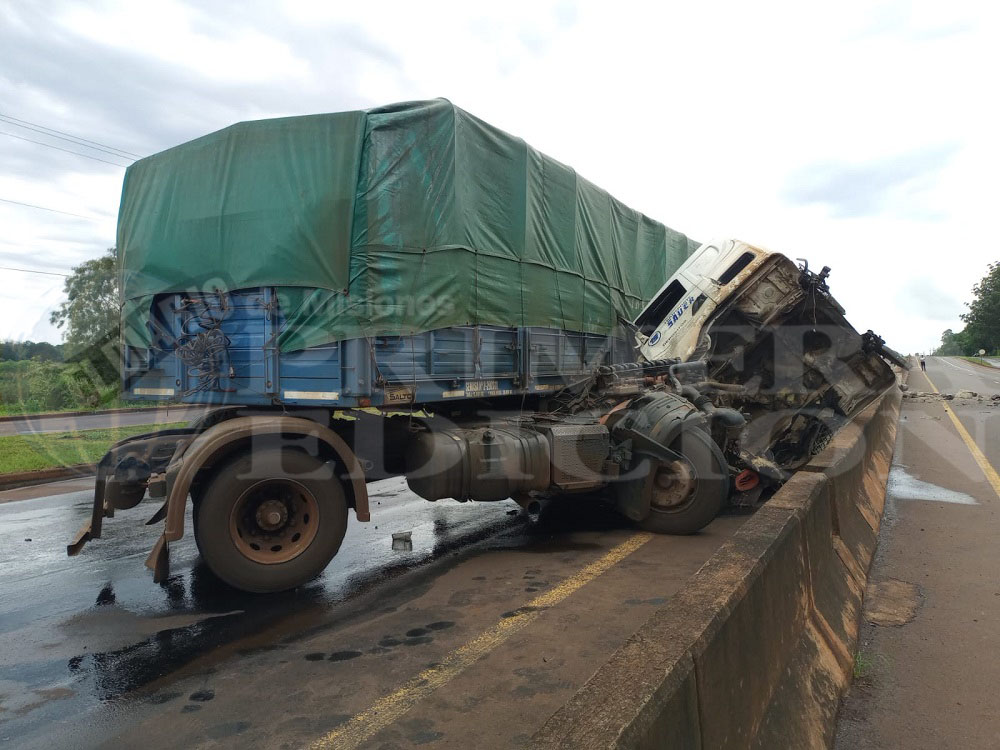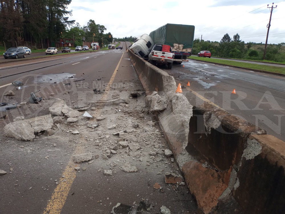 Ambos vehículos circulaban en sentido Garupá-Fachinal cuando, por causas que intentaban establecer, el camión -guiado por un hombre de 40 años- impactó contra la divisoria de carriles de la ruta.