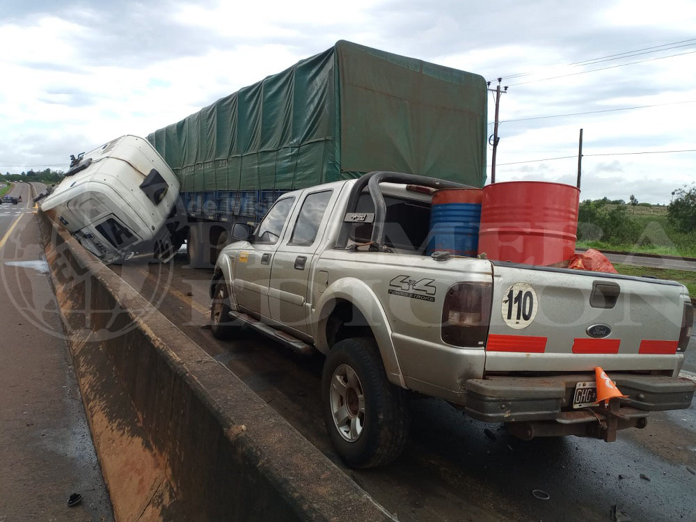 Minutos antes del mediodía de este lunes, se registró un llamativo siniestro vial en el kilómetro 4 de la ruta 105, que involucró a un camión y a una camioneta 4×4.