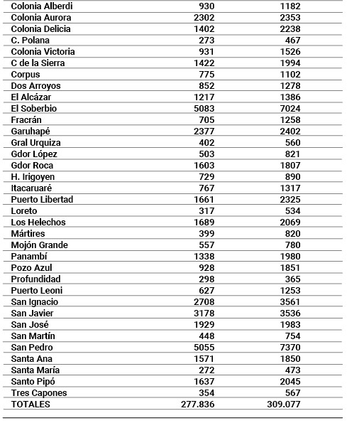 También triunfó en Oberá por 5.000 votos, en Alem por 4.500; en Puerto Iguazú por más de 7.000, en Eldorado por 3.500, en Garupá por 4.500, en Apóstoles por 1.000 y en San Vicente por 3.000.
