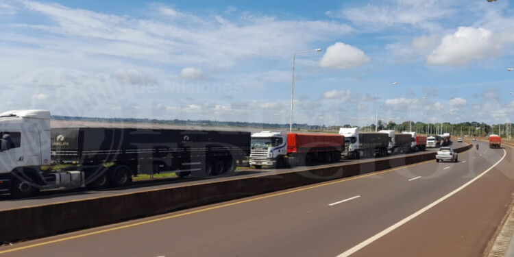 Durante los últimos días se observan largas filas de camiones de carga en la avenida costanera, desde la entrada al puente Posadas – Encarnación hasta el puente El Zaimán. Kilómetros de vehículos de gran porte que permanecen estacionados con el fin de cruzar el paso internacional.