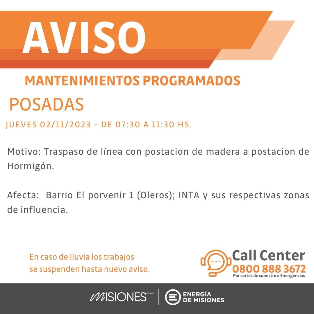 Este jueves, Energía de Misiones llevará a cabo mantenimientos programados en algunas zonas y barrios de la ciudad de Posadas, por ende, estos lugares no tendrán luz.