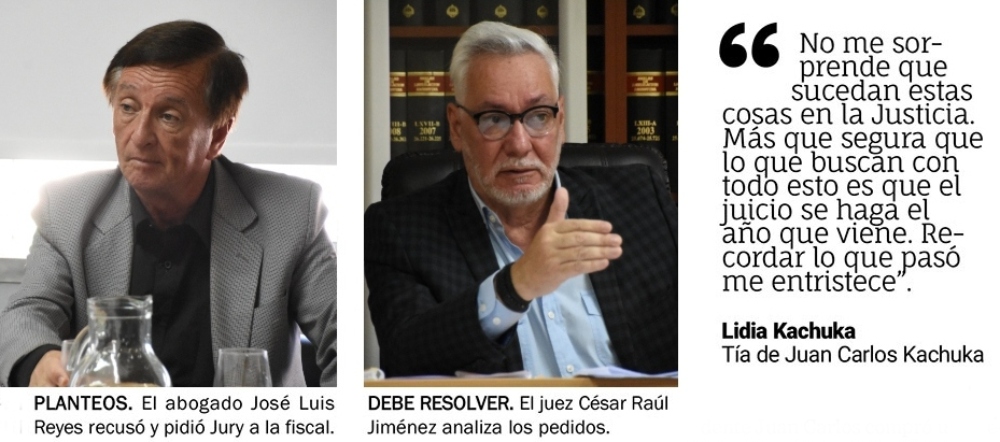 Dos pedidos de un abogado defensor, recusando y pidiendo Jury para la fiscal, generaron que el juicio previsto iniciarse ayer contra el imputado por la muerte de Juan Carlos Kachuka (24) y de su hijo de un año Carlos Benjamín Kachuka, se pospusiera en fecha a definir.
