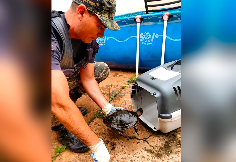 Durante la mañana del martes un vecino del barrio 40 Viviendas de Garupá alertó a los agentes que había visto una tortuga que no lograba salir de una cuneta frente a su hogar. De manera inmediata, los efectivos llegaron al sitio, la sacaron y luego fue llevada hasta la Reserva El Puma de Candelaria.