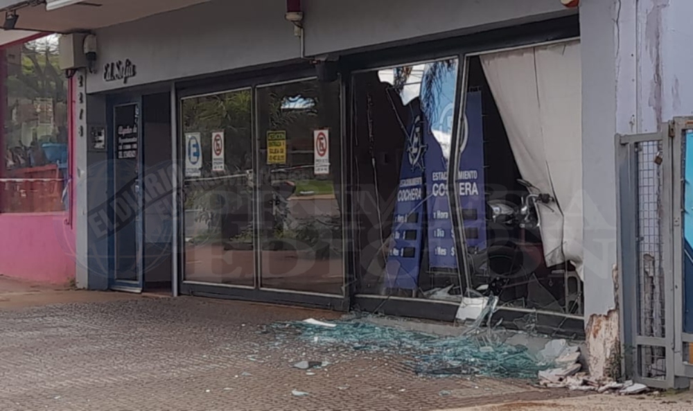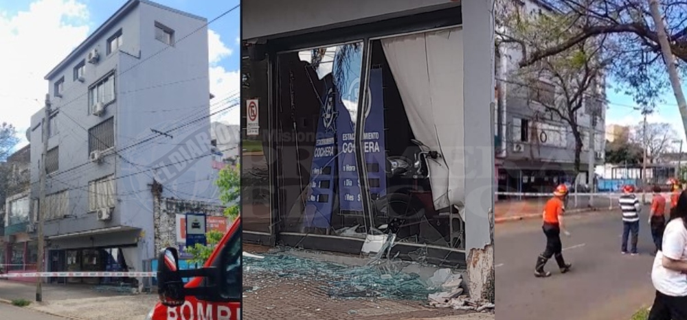 La vidriera del local que está en planta baja del edificio Sofía, “estalló” de manera sorpresiva  y esa situación generó preocupación . El dueño del edificio informó a los Bomberos de la Policía que la estructura presentaría grietas.