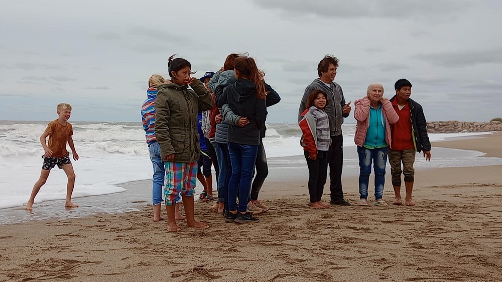 Partieron desde Misiones el miércoles y llegaron a Mar de Cobo el jueves. “Nos encontramos con bastante frío, los chicos estaban muy ansiosos por llegar… desde que salimos de Misiones ya empezaron a preguntar cuánto tiempo tardaría el viaje. Cuando llegamos, bajamos directo a la playa y ellos se metieron igual pese al frío ¡imagínense lo que hubiera sido si hacía calor!” bromeó el cacique.