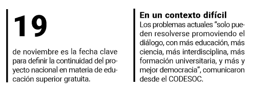 Es así que señaló que “la posibilidad de que la universidad siga funcionando de la forma en que lo viene haciendo está en riesgo y se va a jugar el 19 de noviembre”.