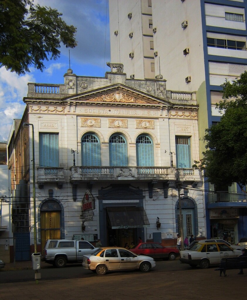 Es uno de los primeros edificios de la ciudad y uno de los hitos arquitectónicos más destacable. Su diseño responde a la arquitectura clásica italiana, utilizando en la fachada elementos como el frontis, el remarcado de columnatas y esculturas ornamentales. En la parte superior luce la loba que alimenta a Rómulo y Remo. Es sin dudas una colectividad de hombres laboriosos y entusiastas que no escatimaron esfuerzos para contribuir con su magnífica obra edilicia al progreso de Posadas, pero sin descuidar en ningún momento la esencia de lo que significa “socorros mutuos”, es decir la permanente ayuda a los semejantes.