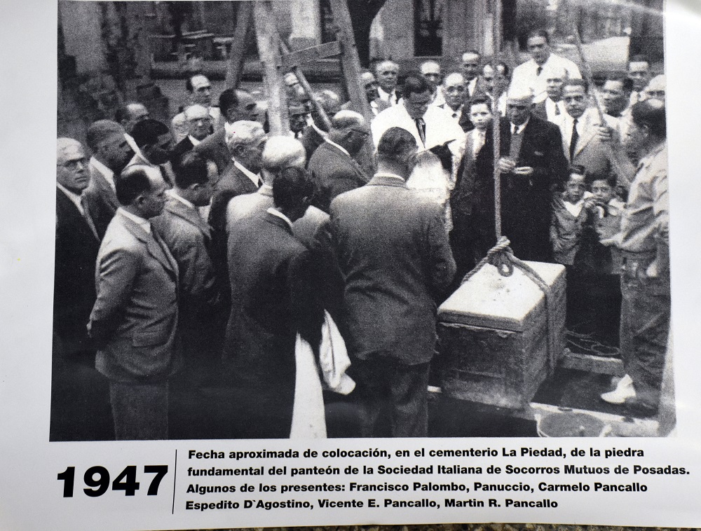 Llegó el medio siglo de vida para la ya prestigiosa Sociedad Italiana de SM y aparte de los solemnes actos realizados para conmemorar tan importante acontecimiento, se asumió un nuevo compromiso de solidaridad social como la colocación de la piedra fundamental para la construcción del futuro panteón social. La ceremonia de bendición estuvo a cargo del sacerdote Luis Imfoff en 1942. Recién en 1972 y siendo presidente de la institución Héctor Monzani, se llamó a concurso de precios y condiciones para su construcción en el cementerio La Piedad. Se firmó el convenio correspondiente con la empresa Juan Curti SRL, con proyectos del arquitecto Morales. Inmediatamente se iniciaron las obras que concluyeron al año siguiente, cumpliendo así con una deuda de gratitud hacia los primeros socios fallecidos.