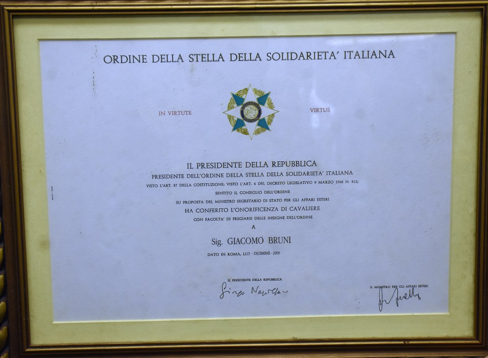 “Es la única Sociedad italiana del país que nunca pidió ayuda al Estado ni al Consulado y por ese motivo, a Giácomo Bruni -quien fuera presidente de la institución a lo largo de 25 años- lo nombraron Caballero del Orden, un título honorífico que está firmado por el presidente de Italia. Es un orgullo”.