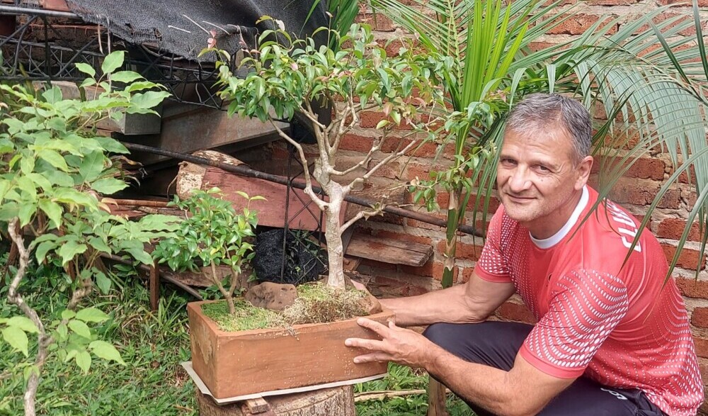 Inició el cultivo del bonsái en 1984. En la actualidad tiene alrededor de cien árboles, algunos a punto de cumplir cuarenta años. “Comenzó todo con mi cuñado, cuando todavía estábamos de novio con mi señora. Siempre me llamó la atención, cuando veía en las películas esos árboles en miniatura. En la Feria del Libro, encontré un ejemplar que explicaba, Bon significa maceta y sai es árbol”, explicó. “Empezamos a leer y a llevarlo a la práctica. Cuesta mucho, es llevar un árbol que ves en la naturaleza a la maceta, con la misma perspectiva. Nunca hice un curso, fue a costa de leer y experimentar”.