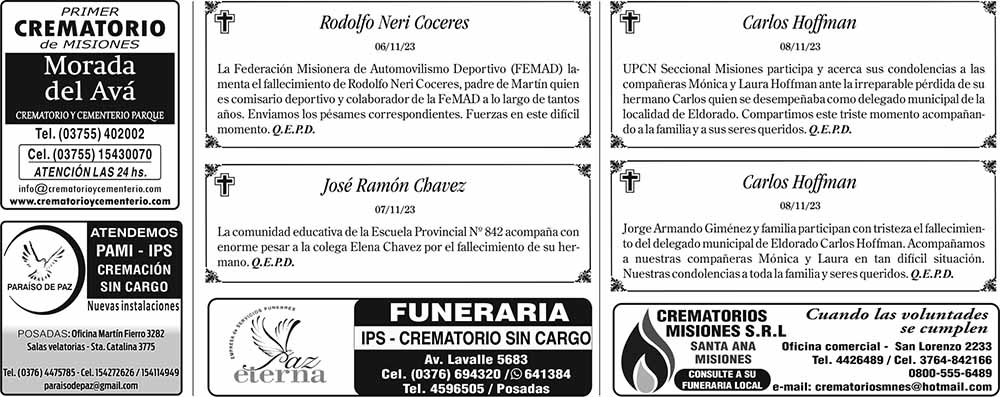 Fúnebres del Jueves 9 de Noviembre de 2023