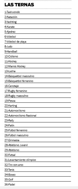 En ese sentido, la cita ya tiene definidos los 36 deportes que conformarán terna y, por ende, pelearán por una estatuilla en la noche del miércoles 29 de noviembre, fecha elegida para la esperada ceremonia de premiación, que este año volverá a contar con el apoyo del Gobierno provincial.