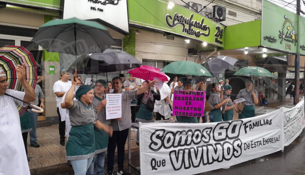 Este lunes, los cerca de 60 empleados de la reconocida panadería y confitería Maná de Posadas, que fue clausurada el pasado jueves por problemas de salubridad, se manifiestan en las puertas del local sobre avenida Uruguay casi Mitre para que la Municipalidad vuelva a reabrir.