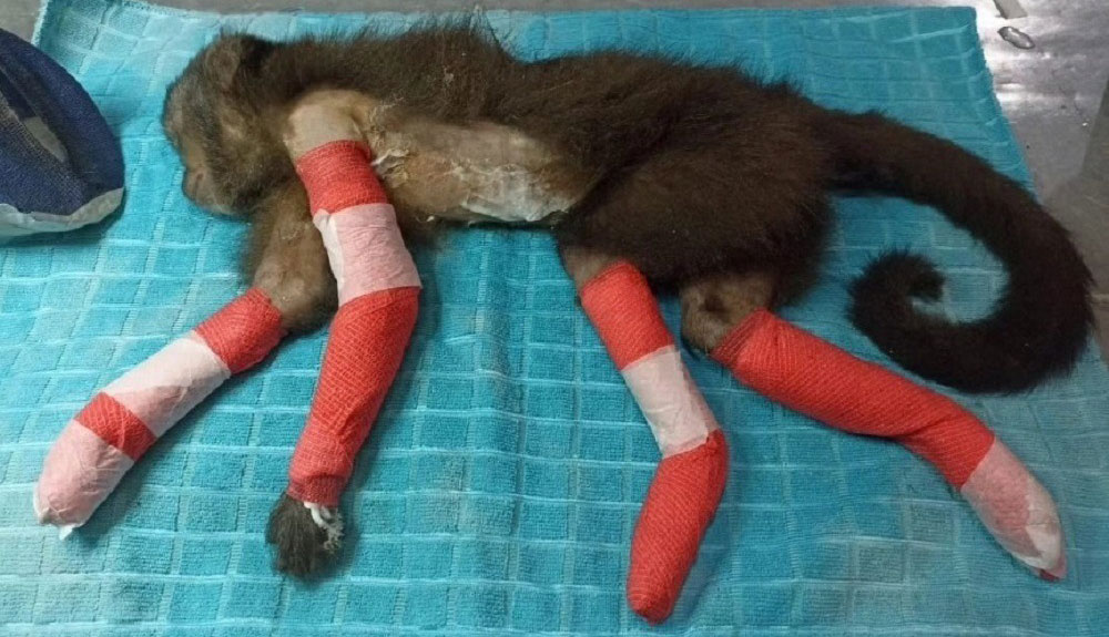 Al entrar en contacto con cables de alta tensión, otros monos “quedan con severas secuelas, que podrían impedir que nuevamente se pongan en la vida libre”.