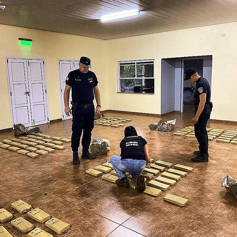 En el sitio, tras rastrillajes hallaron 14 bultos que contenían ladrillos prensados, que luego el personal de la División de Drogas Peligrosas UR-IX de Jardín América a través de las pruebas de narcotest, estableció que se trataba de marihuana.