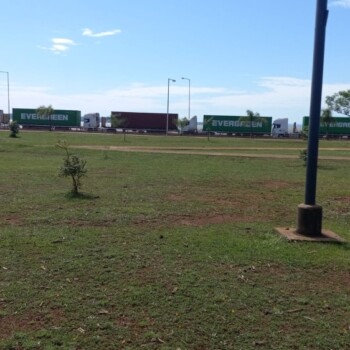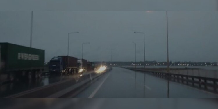 Una imagen que ya se volvió habitual para todos los que transitan por la Costanera posadeña. Este martes, además de la lluvia, amaneció con la recurrente fila de camiones sobre el acceso sur, que esperan poder cruzar por el puente internacional hacia Encarnación, Paraguay.