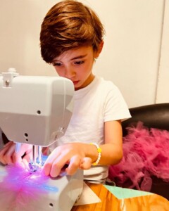 Esta habilidad no pasó desapercibida para sus padres quienes lo apoyaron y hoy el pequeño ya toma clases particulares de corte y confección de la mano de Agustina Roggini donde despliega su don.