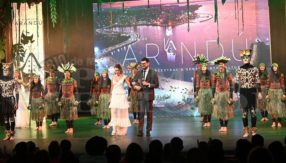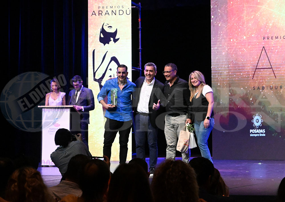 Uno de los momentos más importantes de la velada fue la elección del Artista Consagrado Arandú 2023. Allí el intendente de Posadas, Leonardo Stelatto, le hizo entrega de la estatuilla al veterinario, actor y dramaturgo Raúl Novau.
