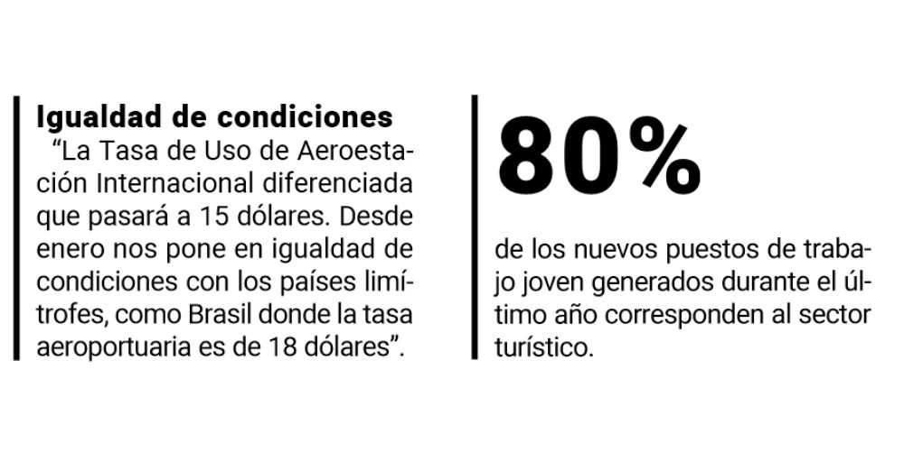 “Esto nos pone en igualdad de condiciones con los países limítrofes, como Brasil donde la tasa aeroportuaria es de 18 dólares, Colombia 41 dólares, Chile y Perú rondan los 20 dólares… nosotros teníamos la Tasa de Uso de Aeroestación Internacional (TUAI) más cara de toda la región”, remarcó Arrúa.