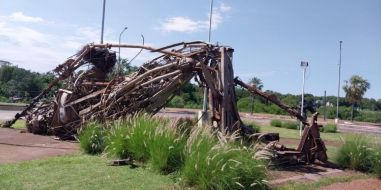 Según detallaron, el óxido propio del material con el que está hecho generó un quiebre en uno de sus tres parantes principales y más los fuertes vientos de las últimas semanas la escultura había terminado inclinada hacia la derecha hasta que finalmente cayó.