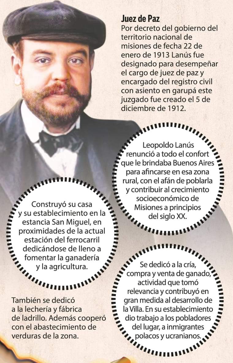 Cada vez que se acerca un nuevo aniversario del barrio Miguel Lanús -cumplió 119 años-, pareciera que el fundador, Leopoldo Víctor Lanús, se manifiesta e inspira a su bisnieta, la investigadora Gloria Torres, para realizar nuevos aportes a su extensa biografía. Esta vez las noticias llegaron a través del escritor Ulises Gallardo, quien se encuentra indagando sobre la ciudad de Río Gallegos, y a cuyas manos llegaron documentos que testifican tamaña odisea luego de regresar de Estados Unidos y antes de viajar a Misiones.