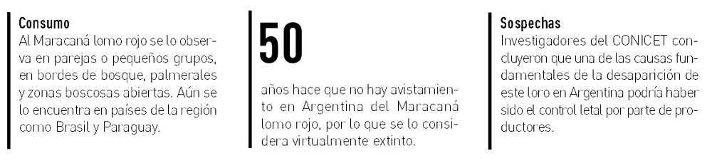 Aves Argentinas, la organización centenaria en conservación de aves y vida silvestre del país, junto al Ministerio de Ecología de Misiones y una red de instituciones de centros de manejo de fauna, anunciaron el “Proyecto Maracaná Lomo Rojo”, que apunta a rescatar a una especie críticamente amenazada y posiblemente extinta.