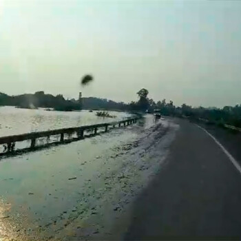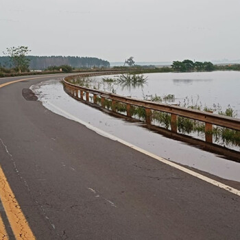AGUAS SIN CONTROL. La ruta Nacional 14 que comunica a la ciudad de Santo Tomé con el resto del país esta por demás complicada su circulación, a raíz de la crecida del río Uruguay.