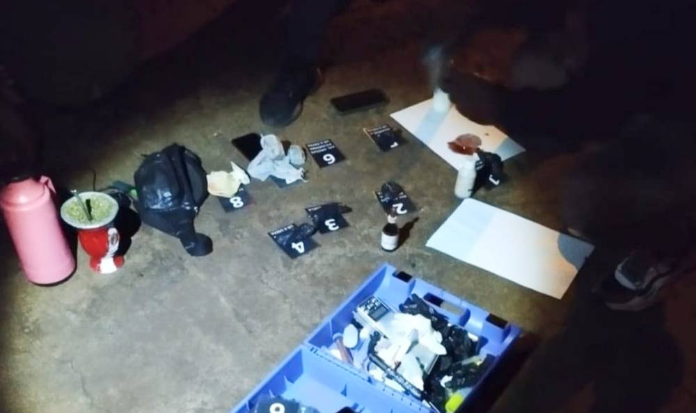 Al identificarlos, uno de ellos exhibió su riñonera y en el interior contenía un tijera, un teléfono celular y seis envoltorios negros con una sustancia verde amarronada en su interior, que luego del narcotest practicado por personal de Droga Peligrosas, arrojaron positivo para marihuana.