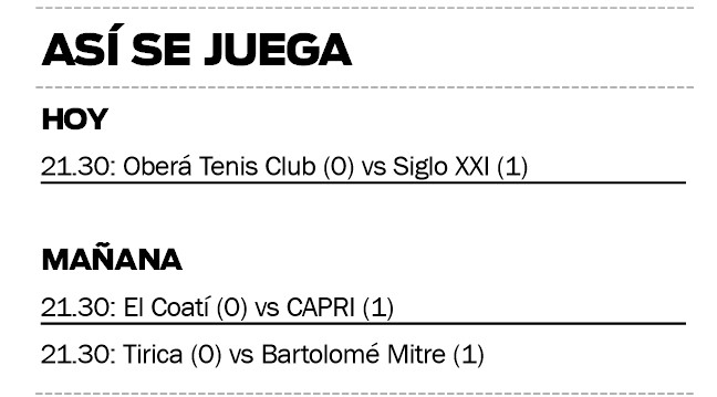 Con el adelanto que protagonizarán Oberá Tenis Club y Siglo XXI de Puerto Rico, esta noche se dará lugar a los Juegos 2 de la instancia de cuartos de final de los playoffs del Torneo Pre Federal de Primera División de la Liga Provincial de Básquetbol.