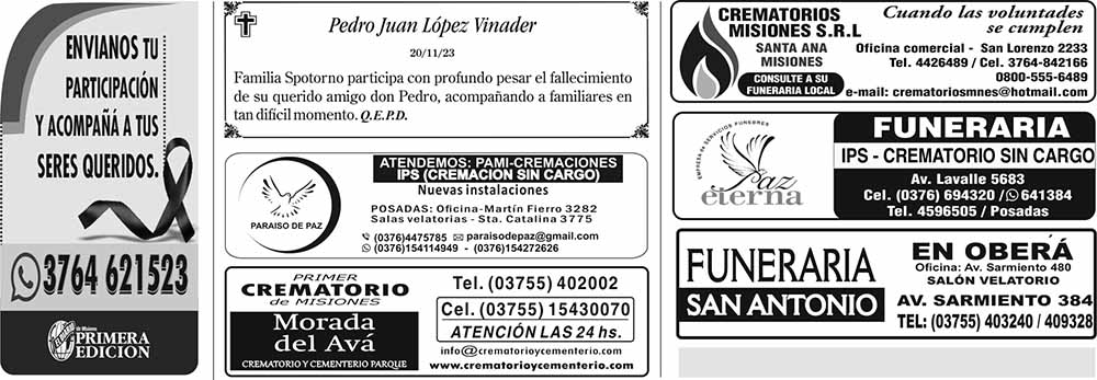Fúnebres del Sábado 25 de Noviembre de 2023