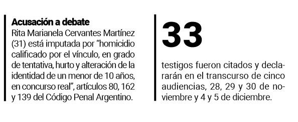 Rita Marianela Cervantes Martínez llega a juicio oral con los plazos de prisión preventiva vencidos, no registra antecedentes penales y también tiene un hijo de 6 años con el que, durante poco más de tres años, no pudo mantener contacto fluido porque permanece privada de la libertad en la Unidad Penal V del Servicio Penitenciario Provincial.