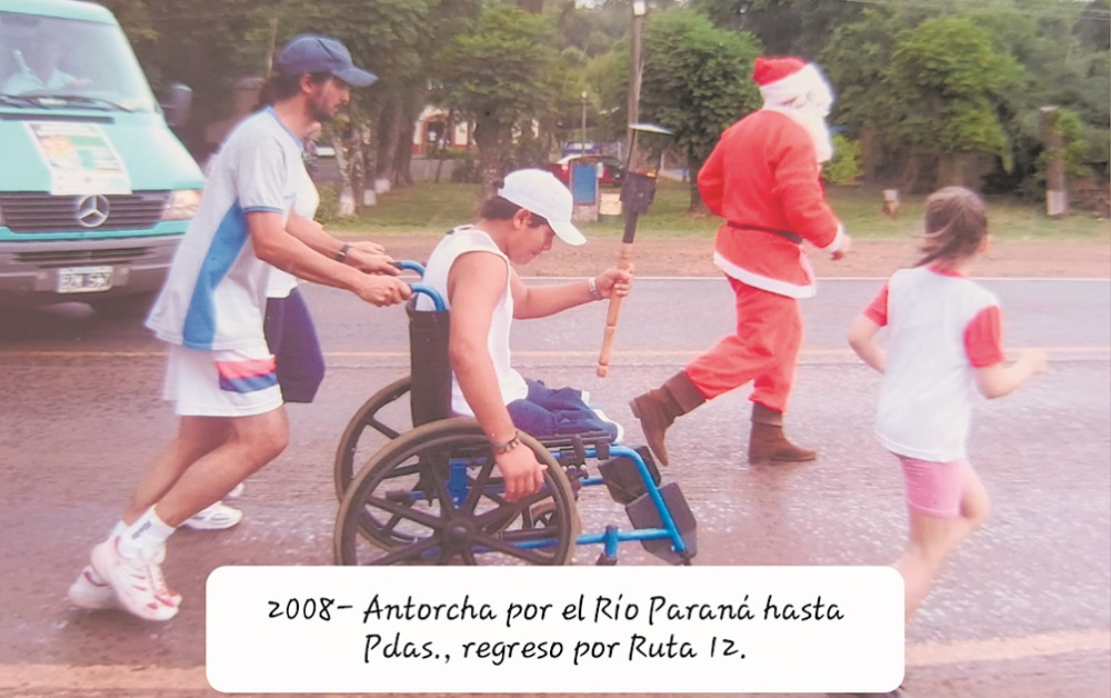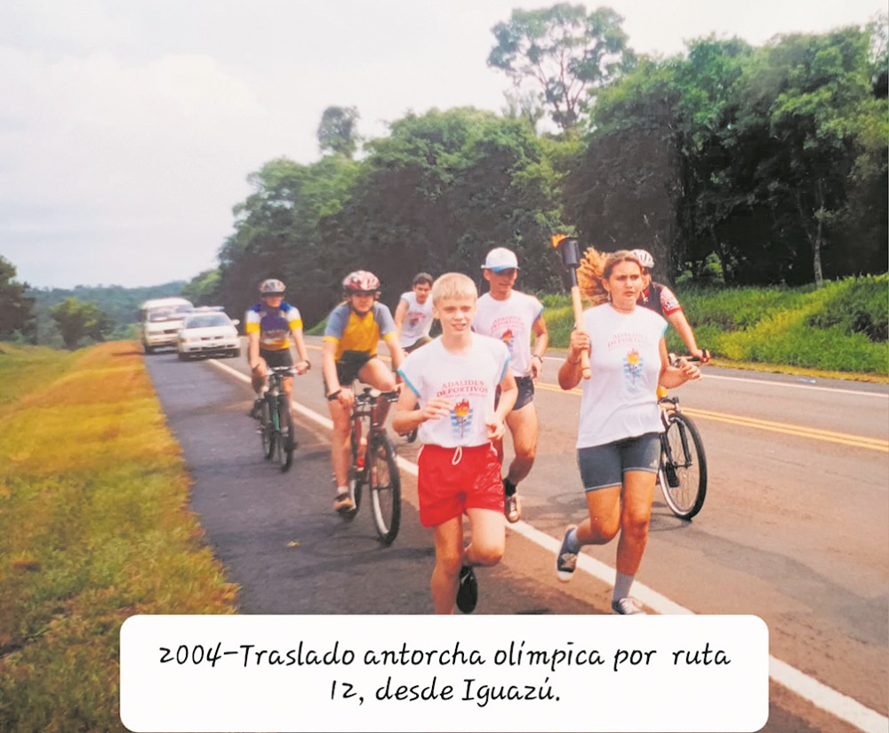 La incorporación del traslado de las antorchas en esta gran fiesta, fue una iniciativa del profesor Heriberto Dörper, en 1993, lo que generó un ambiente especial en cada acontecimiento anual. Al respecto, Juan Plocher trajo a colación una experiencia de las primeras ediciones cuando caminando por la avenida Oscar Darú le pasa con la antorcha el docente atleta Luís Lovato. “Fueron momentos muy emotivos, inolvidables” de poder trasladar por primera vez a ese bendito símbolo del deporte mundial. Los traslados de las antorchas se realizan 24 horas antes de la gran fiesta, con partida de distintos lugares, como ser la Isla Caraguatay, desde el Hito de las Tres Fronteras, en Puerto Iguazú, desde la localidad paraguaya de Ape-Aimé, por el río Paraná hasta Posadas y de regreso por la ruta nacional 12 con la participación de atletas de la localidad y de otras partes de la provincia.