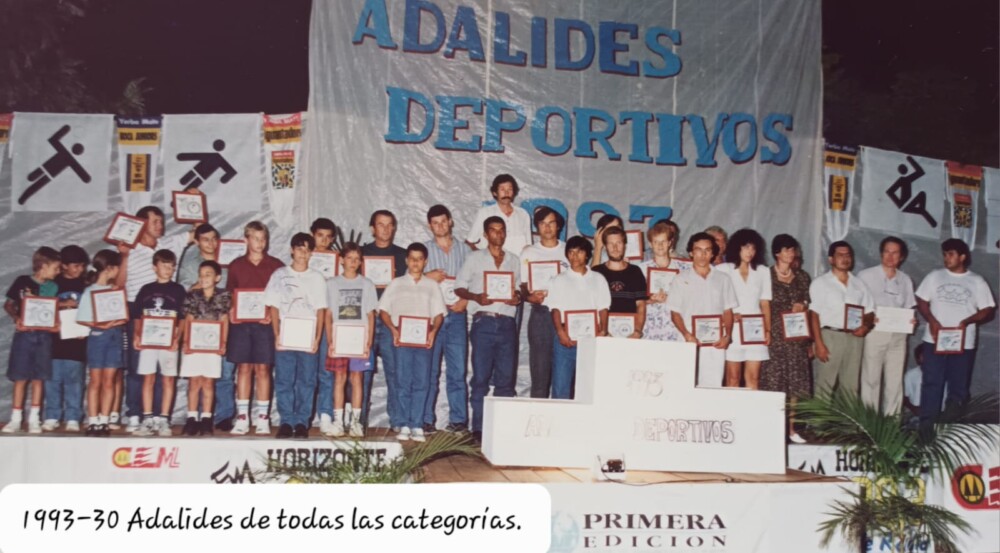 En Atletismo, Luis Lovato; en Automovilismo, Bodo Janssen Harms; en Básquetbol Jorge Barrios; en Bowling Fernando Beil; en Faustball, Mariela Szwarc; en Fútbol, Daniel Martínez; en Futsal infantil, Cristian Oliveira; en Futsal mayores, Zacarías Ramos; en Futsal Seniors, Martín Wanderer; en Handball promocional, Mauro Peterson; en Handball mayores, Juan Carlos Maciel; en Handball damas, Mabel Pavón; en Pesca, Kurt Urtlauf; en Tenis menores, Henry Jansen Harms; en Tenis mayores, Manfredo Steffanowski; en Tenis de Mesa, Walter König; en Taekwondo, Esteban Mudrig; en Vóleibol, Emilio Garciarena; que correspondieron a 13 disciplinas deportivas. En esa primera edición de 1989 no hubo un Adalid Deportista del Año, que premiara al más destacado entre todos; pero lo más llamativo fue que en 10 días se organizó y se armó todo, gracias a una amplia y total colaboración de toda una comunidad. Apenas finalizó este primer encuentro, se fijó fecha en 1990 para iniciar reuniones para una segunda fiesta. Con renovados bríos los organizadores al ver el gran apoyo popular deciden realizar otras; en 1991 la segunda cena fue en el salón del Club Argentino Germano de Gimnasia y Cultura, el beneficio económico fue para el Hogar de Ancianos; en la tercera realizada en 1992 el beneficio fue para el Hogar de Niños de Montecarlo.