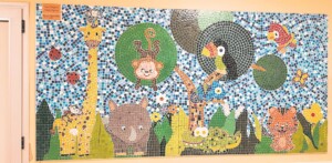 El mural de animales, lo hizo para Pediatría, “fue un trabajo en el que pensé en poner animalitos para adornar el consultorio y terminó siendo un mural para el Hospital de Pediatría y si bien tiene cosas para corregir, tuve el placer de poder terminarlo con mi hija, así que amé ese trabajo”.