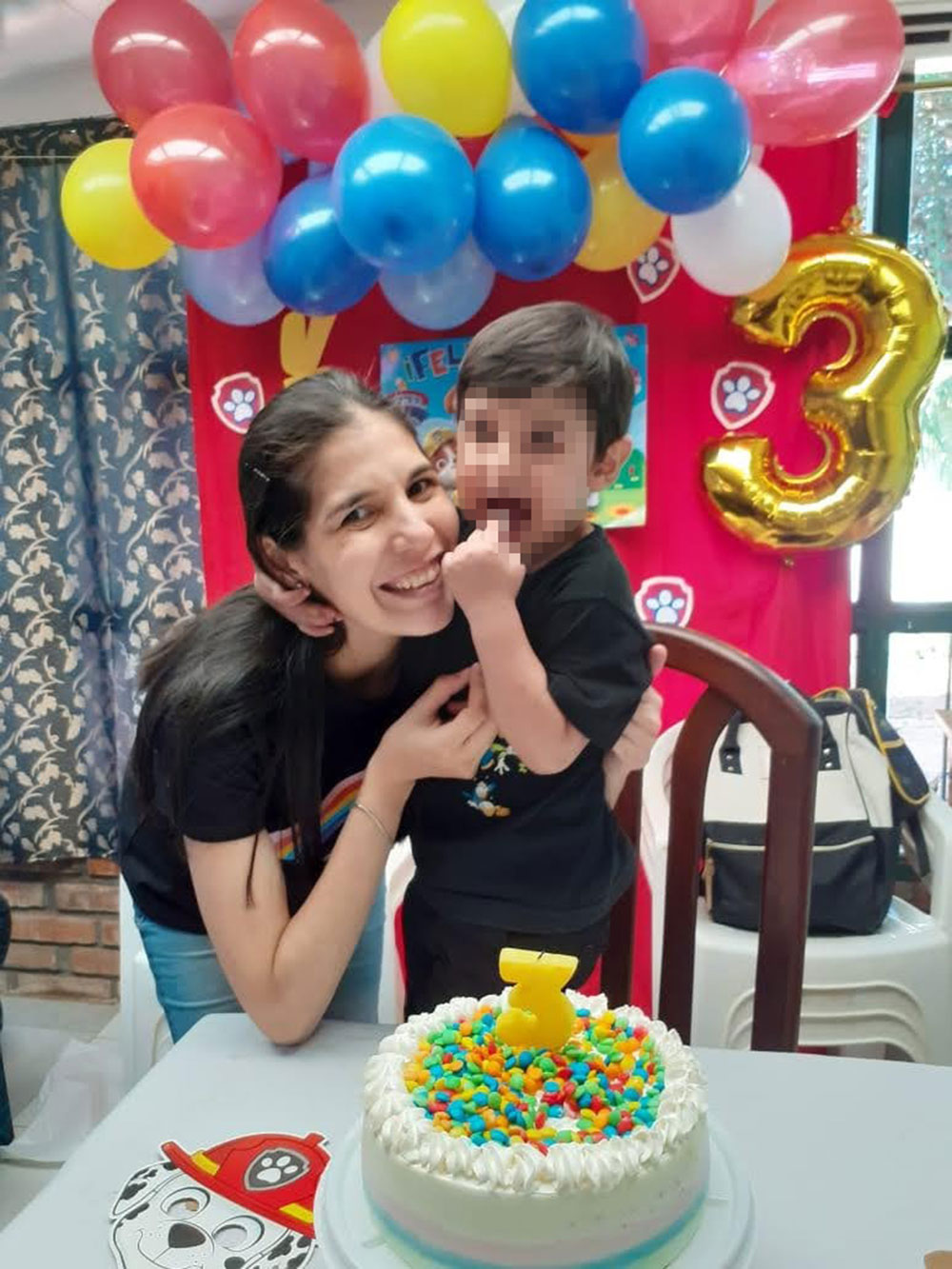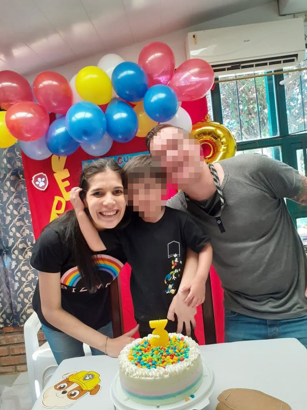 Las imágenes no remiten descriptivamente a una joven embarazada. Fueron tomadas durante el festejo del tercer cumpleaños de su hijo varón el 8 de agosto de 2020 y 19 días después jugando con el niño y también junto a su esposo y padre del menor.