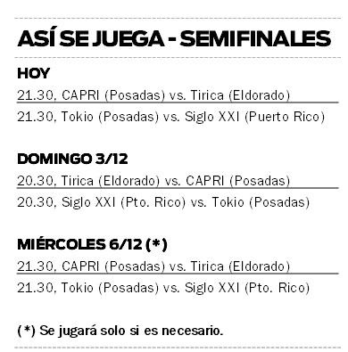 Por otro lado, en su estadio y desde el mismo horario, CAPRI tendrá que verse las caras con el vigente campeón, que viene de meter otro capítulo épico en la fase anterior de los playoff. Para este compromiso esperan la vuelta de Juampi Rojas. El Azurro también goza de un gran momento deportivo, llega tras bajar a El Coatí sin mayores sobresaltos en una serie que terminó 2-0 y quiere aferrarse a su prometedor presente para jugar su primera final provincial.