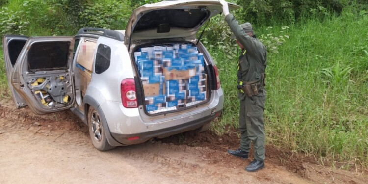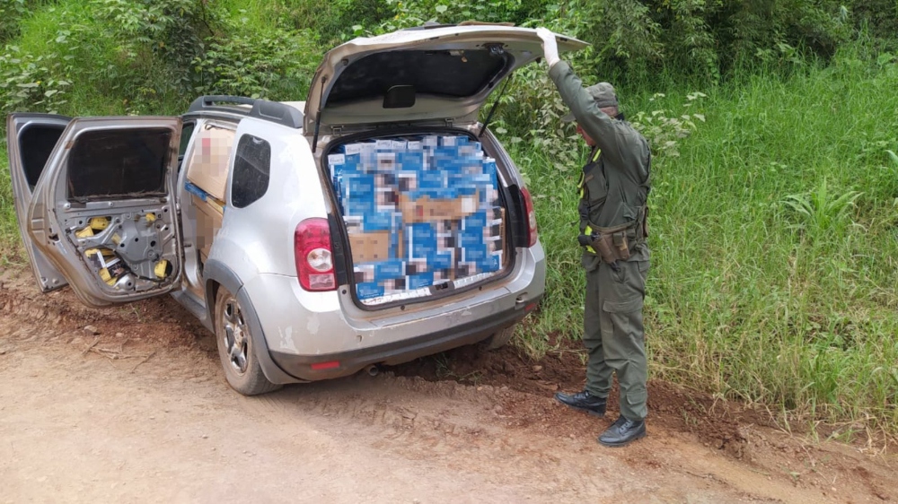 Ante esta situación los gendarmes realizaron un seguimiento controlado del auto y a unos kilómetros del Paraje Aguas Blancas hallaron el auto abandonado y cargado con cajas.