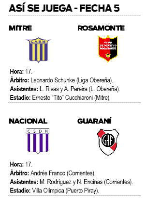 En la jornada, además, habrá otros encuentros. Por la Zona 1, el ya clasificado Bartolomé Mitre jugará ante el eliminado Rosamonte de Apóstoles.