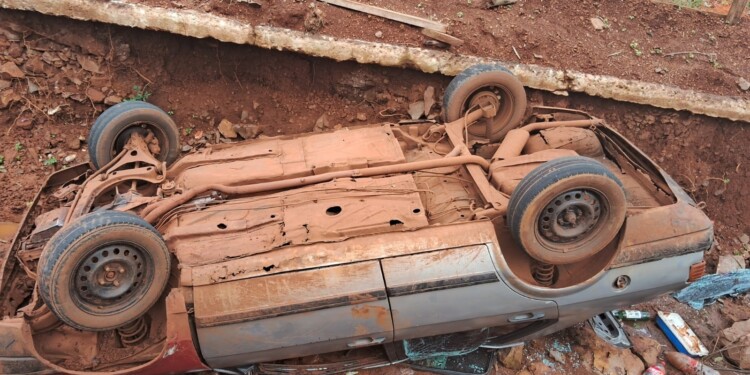 Efectivos de la Comisaría Primera de Oberá fueron convocados cerca de las 10:10 en una obra de construcción sobre la avenida José Ingenieros, frente al Corralón Municipal, donde -por razones que se tratan de establecer- había caído un automóvil Volkswagen Gacel que terminó en posición invertida.