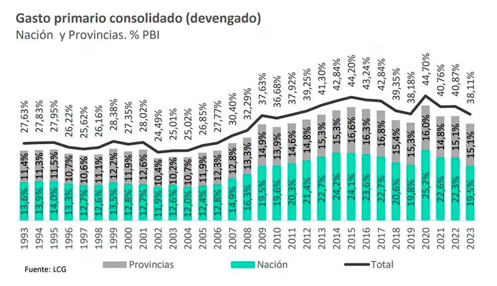 Para LCG, en 2024 esa reducción debería ser de 4,4% del PBI, mientras que Analytica proyecta que la poda total a lo largo del año próximo alcanzaría a 3,6% del PBI “explicado por una reducción de 2,5 puntos en los gastos corrientes y de 1,1 puntos en los de capital”, mencionaron.