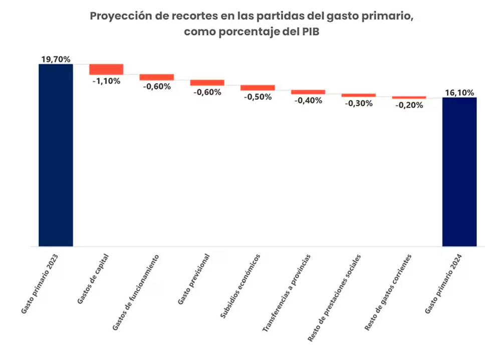 Los gastos de funcionamiento (principalmente salarios públicos) implicaría otros 0,6% de la poda fiscal de 2024, en conjunto los subsidios lo harían en 0,5% del PBI.