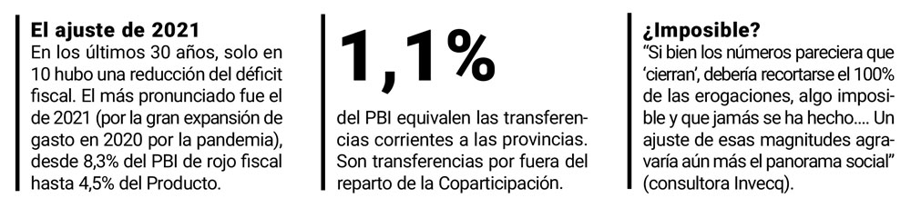 La consultora Invecq planteó una pregunta más elemental: si es o no viable. “Si bien los números pareciera que ‘cierran’, debería recortarse el 100% de estas erogaciones, algo imposible y que jamás se ha hecho. En segunda instancia, cabe preguntarse si dicho ajuste es viable política y socialmente: la situación es muy delicada (pobreza por encima del 40% e indigencia en torno al 10%), y probablemente empeore durante la primera parte del año -como consecuencia, entre otras cosas, del fogonazo inflacionario-. Un ajuste de esas magnitudes agravaría aún más el panorama social”, mencionaron.