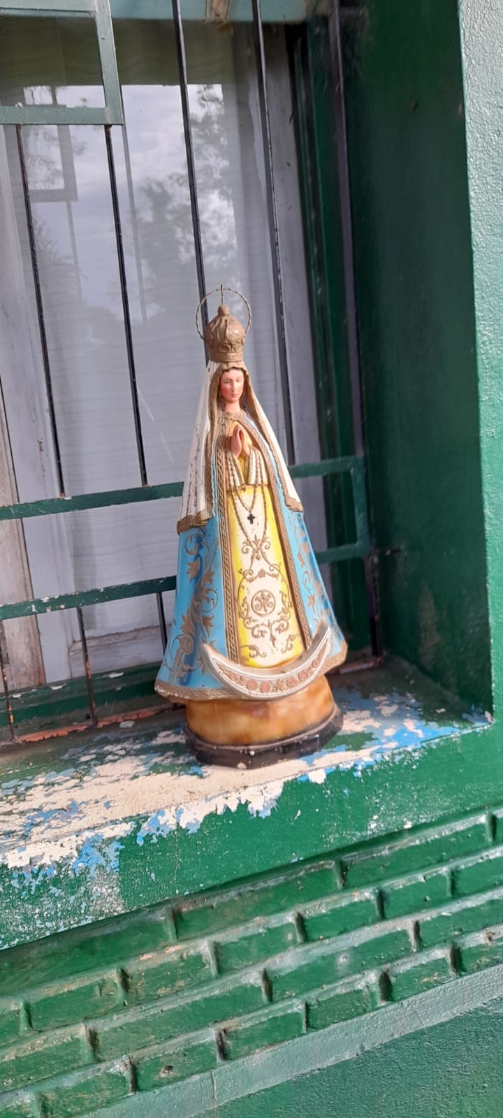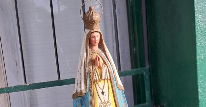 “Los vecinos encargados de mantener y cuidar la capilla San Pantaleón, ubicada a unos 50 metros de la escuela, estaban buscando a la Virgen. Estaban preocupados porque presumían que había desparecido con la inundación”.