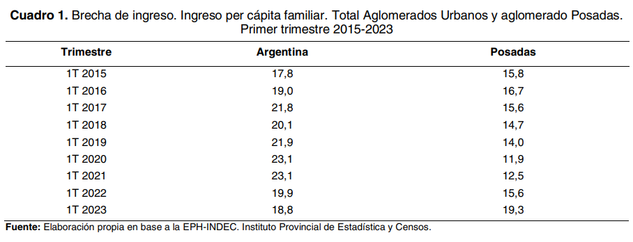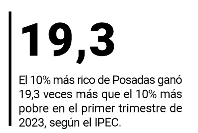 Finalmente, en el primer trimestre del año 2023, en Argentina, el 10% de la población de mayores ingresos obtuvo retribuciones mensuales 18,8 veces superior al 10% inferior. En Posadas, el valor fue de 19,3 veces.