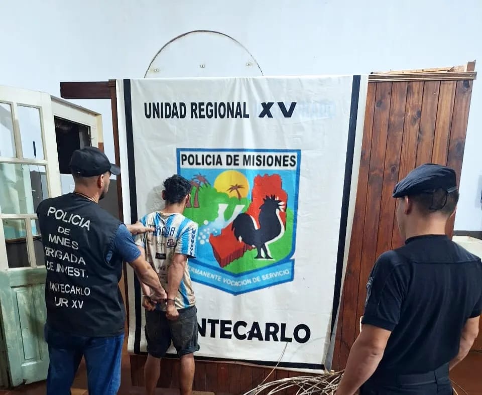 Así también, en la noche de ayer agentes pertenecientes a la Unidad Regional N.° XV de Montecarlo, fueron alertados por vecinos del barrio Martín Fierro, que un hombre estaría robando cables del tendido eléctrico. Rápidamente, los agentes acudieron al lugar y detuvieron a Francisco A. de 31 años, que se encontraba cortando con un machete los cables de los alumbrados públicos.