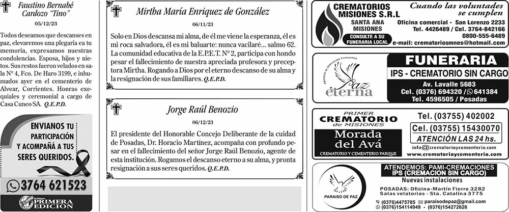 Fúnebres del Jueves 7 de Diciembre de 2023